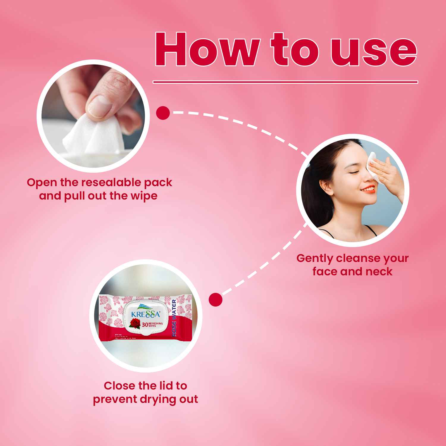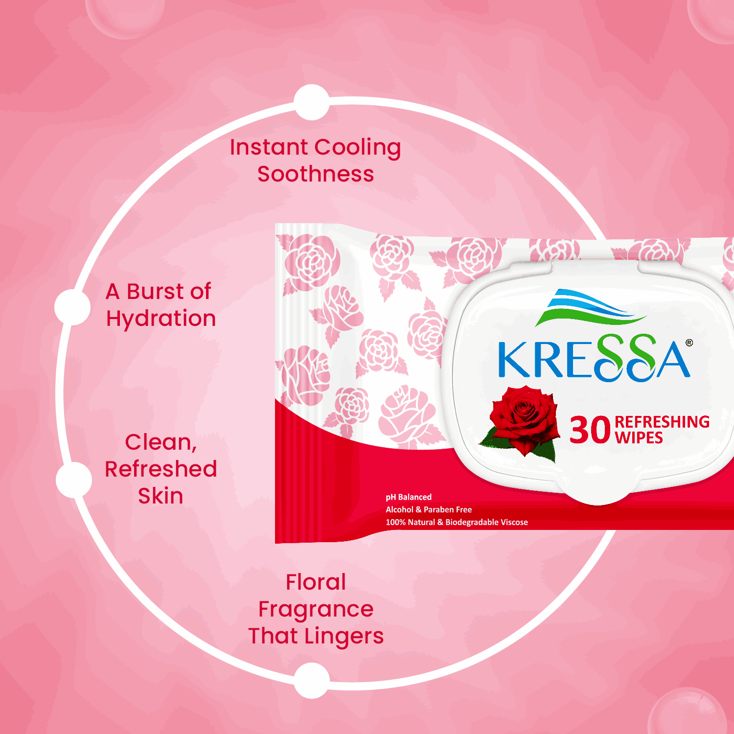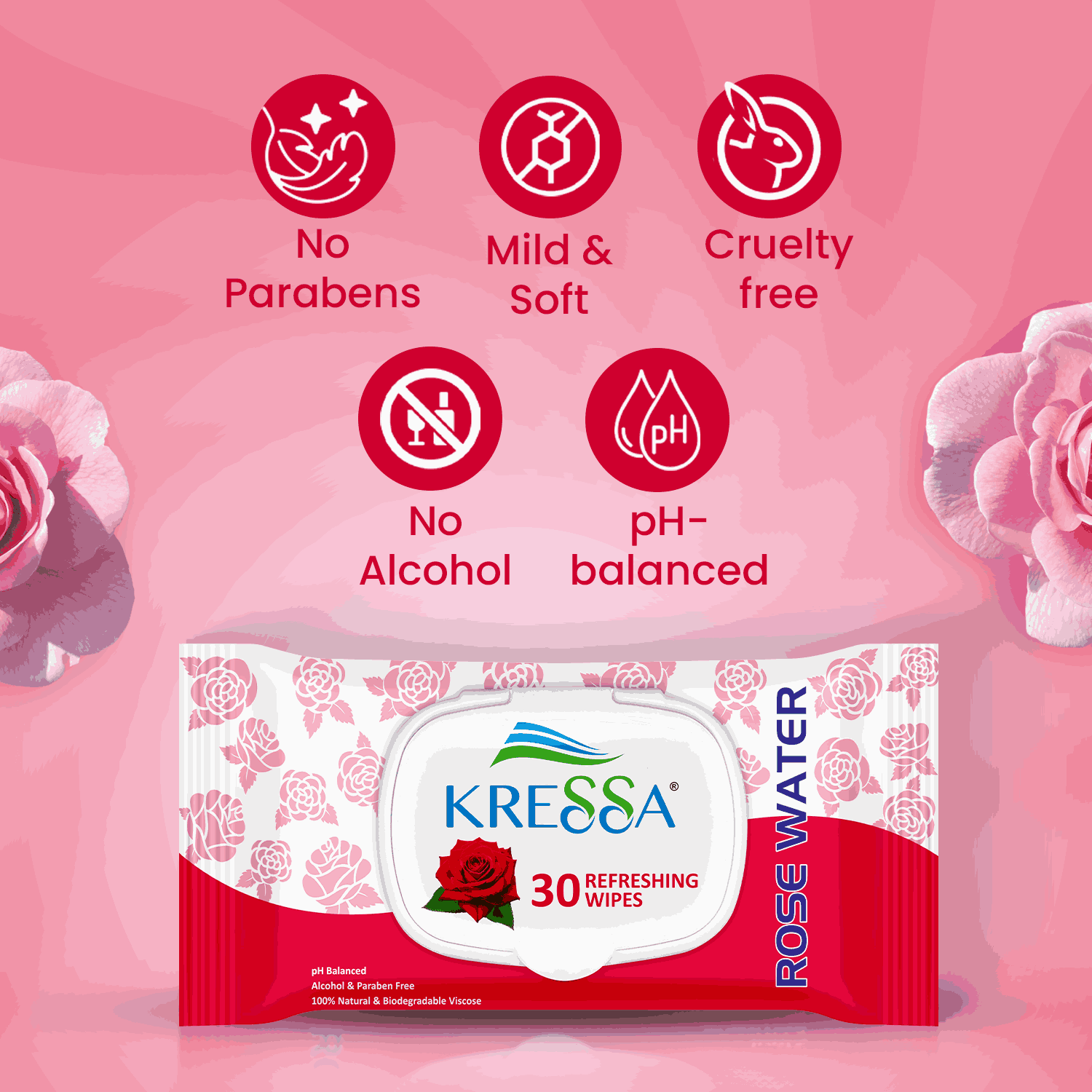 - Experience instant refreshment with Kressa Rose Water Refreshing Wipes. These wipes are ideal for wiping away sweat, dirt or excess oil while instantly hydrating and soothing your skin.