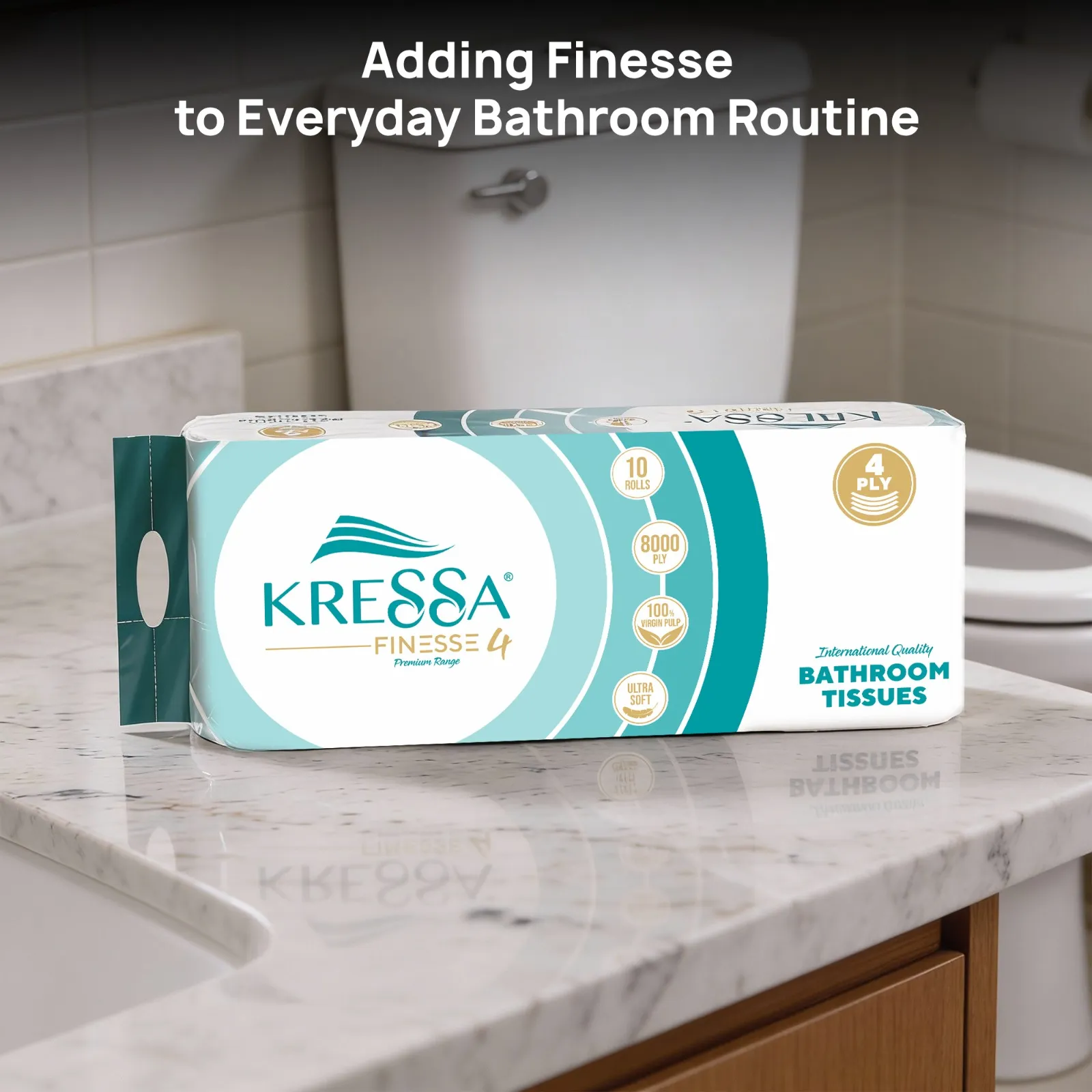 Experience premium comfort with Kressa 4-Ply Toilet Paper Roll. Crafted from 100% virgin pulp, this ultra-soft and strong tissue delivers exceptional absorbency for a cleaner, more hygienic everyday experience. The 4-ply design provides a thicker, more comfortable feel while using fewer sheets, helping you reduce waste and save money. Our hypoallergenic toilet paper is free from harsh chemicals, dyes, and fragrances, preventing irritation for sensitive skin. It’s an environmentally friendly choice, made from sustainable, renewable materials without compromising performance. Designed to fit standard toilet paper holders, Kressa 4-ply comes in convenient 10-roll packs—perfect for homes and offices alike. Choose Kressa for a luxurious bathroom upgrade that combines softness, strength, and responsible freshness.