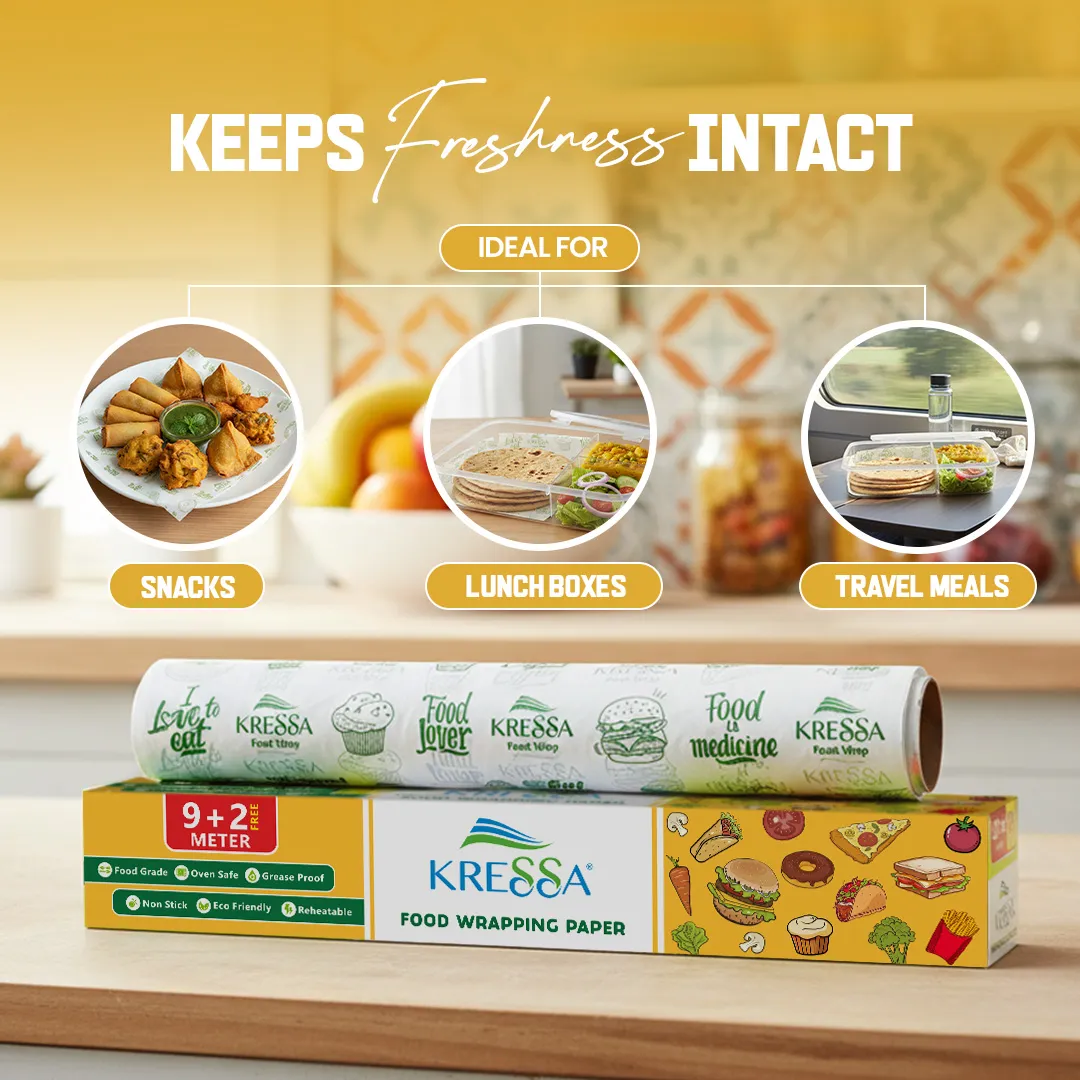 Be the first to review “Kressa Food Wrapping Paper | 9+2 Mtrs Length | Food Grade, FDA Certified, Oven Safe, Non Stick, Grease Proof, Biodegradable”