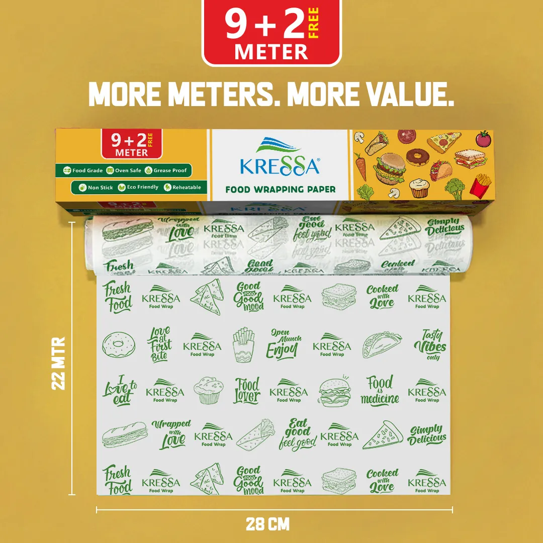 Kressa Food Wrapping Paper | 9+2 Mtrs Length | Food Grade, FDA Certified, Oven Safe, Non Stick, Grease Proof, Biodegradable