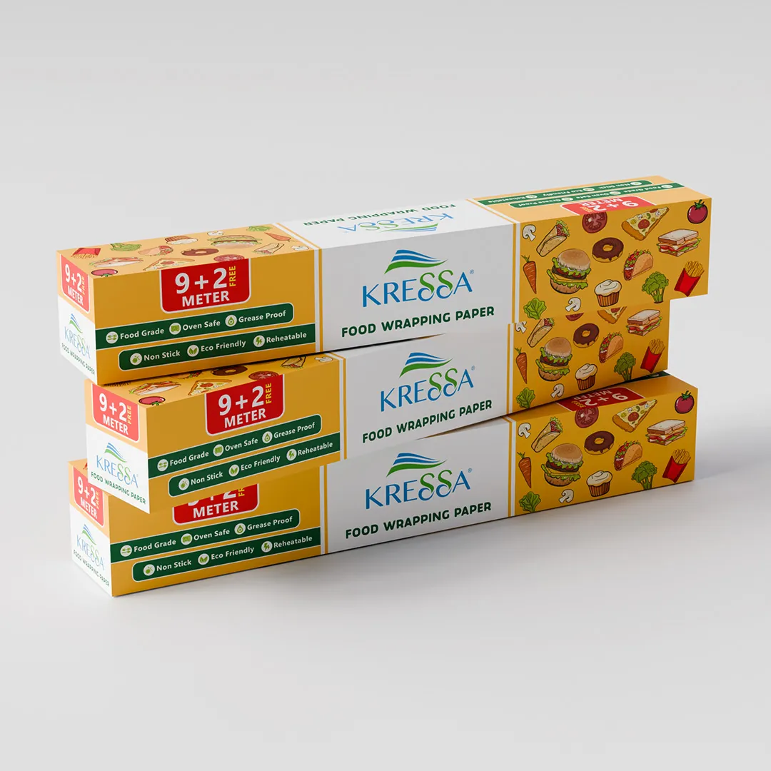 Kressa Food Wrapping Paper | 9+2 Mtrs Length (Pack of 3) | Food Grade, FDA Certified, Oven Safe, Non Stick