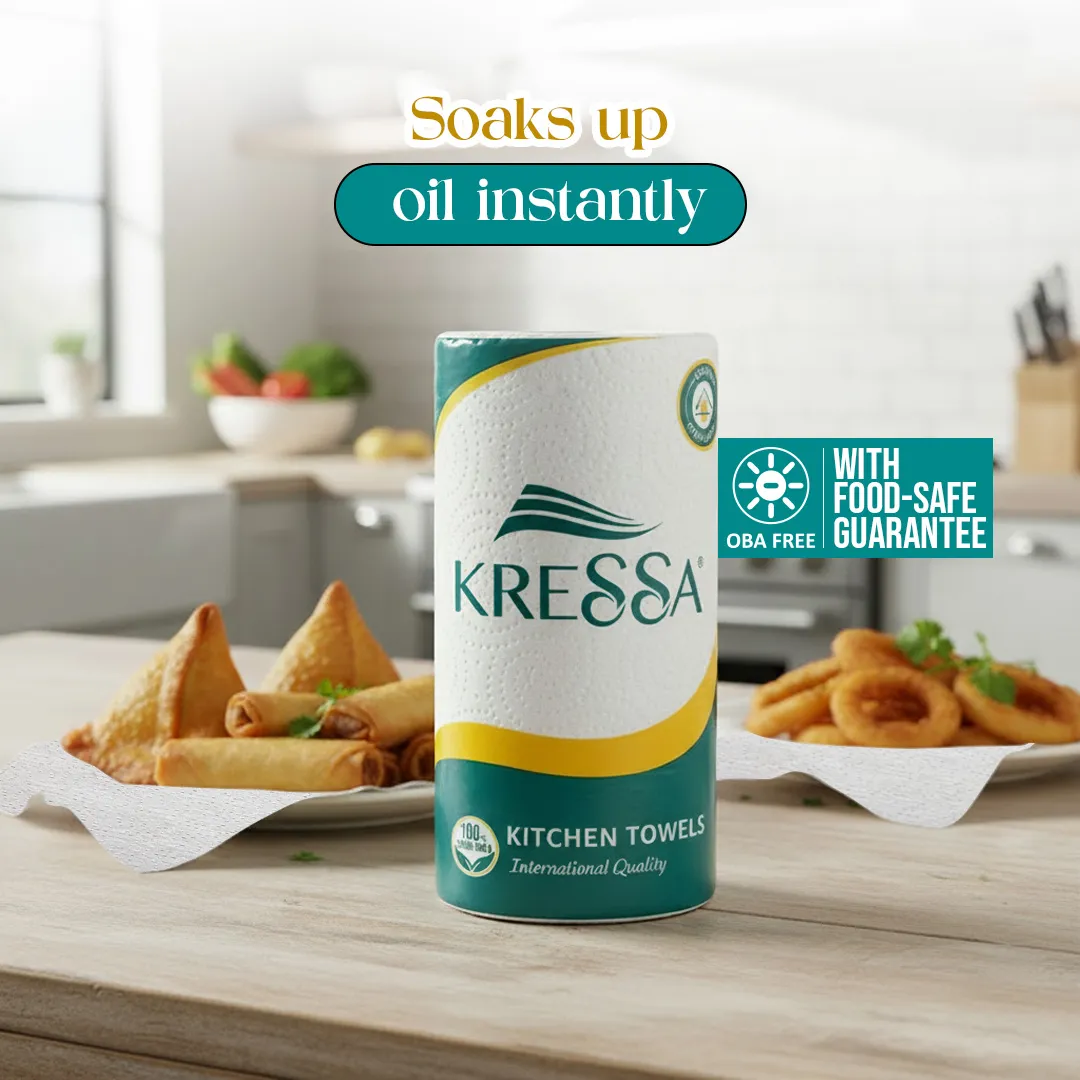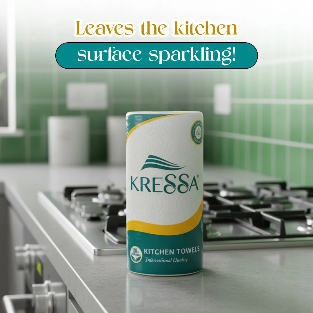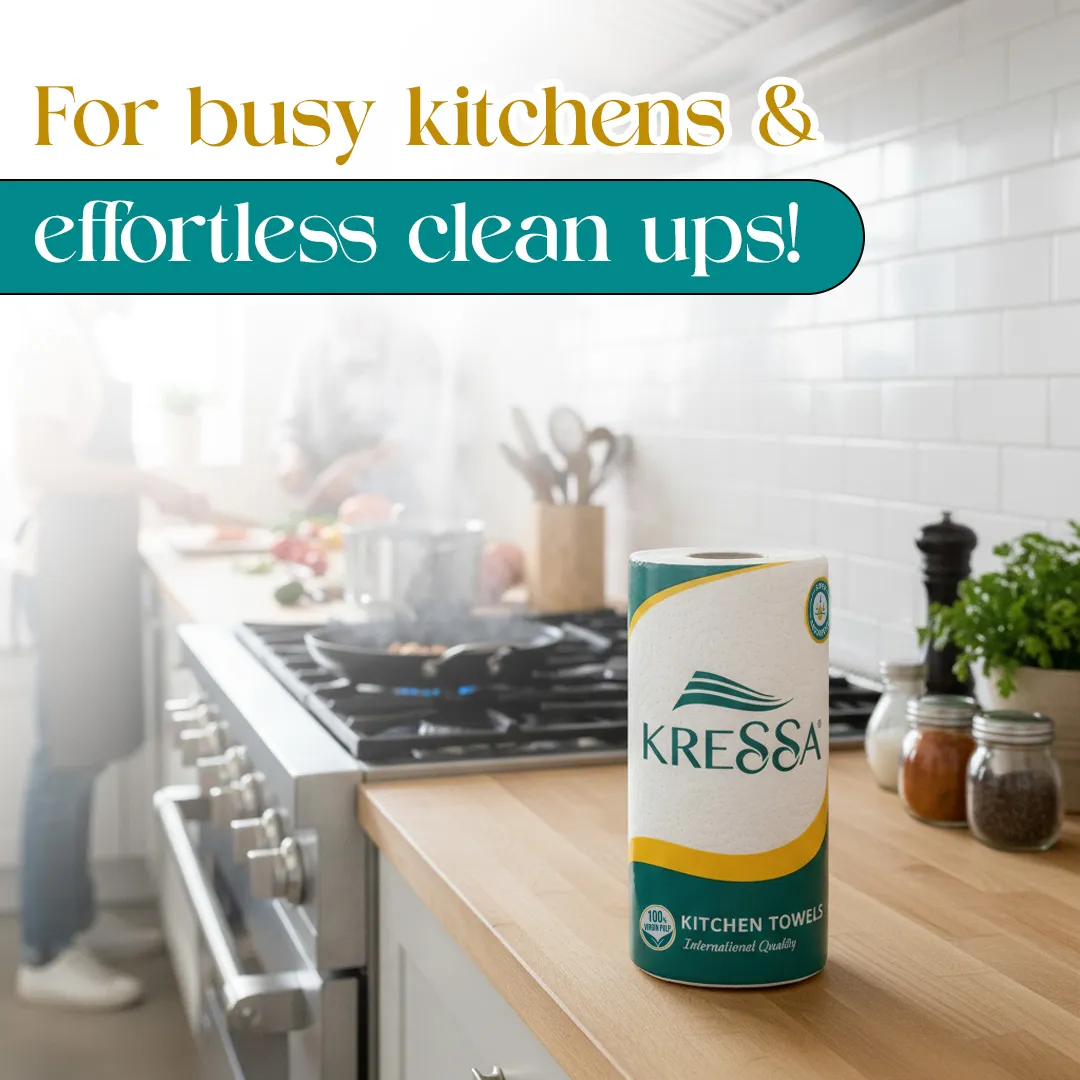 - Kressa Kitchen towel made of virgin pulp which makes it hygienic at the same time biodegradable and easy to dispose off.