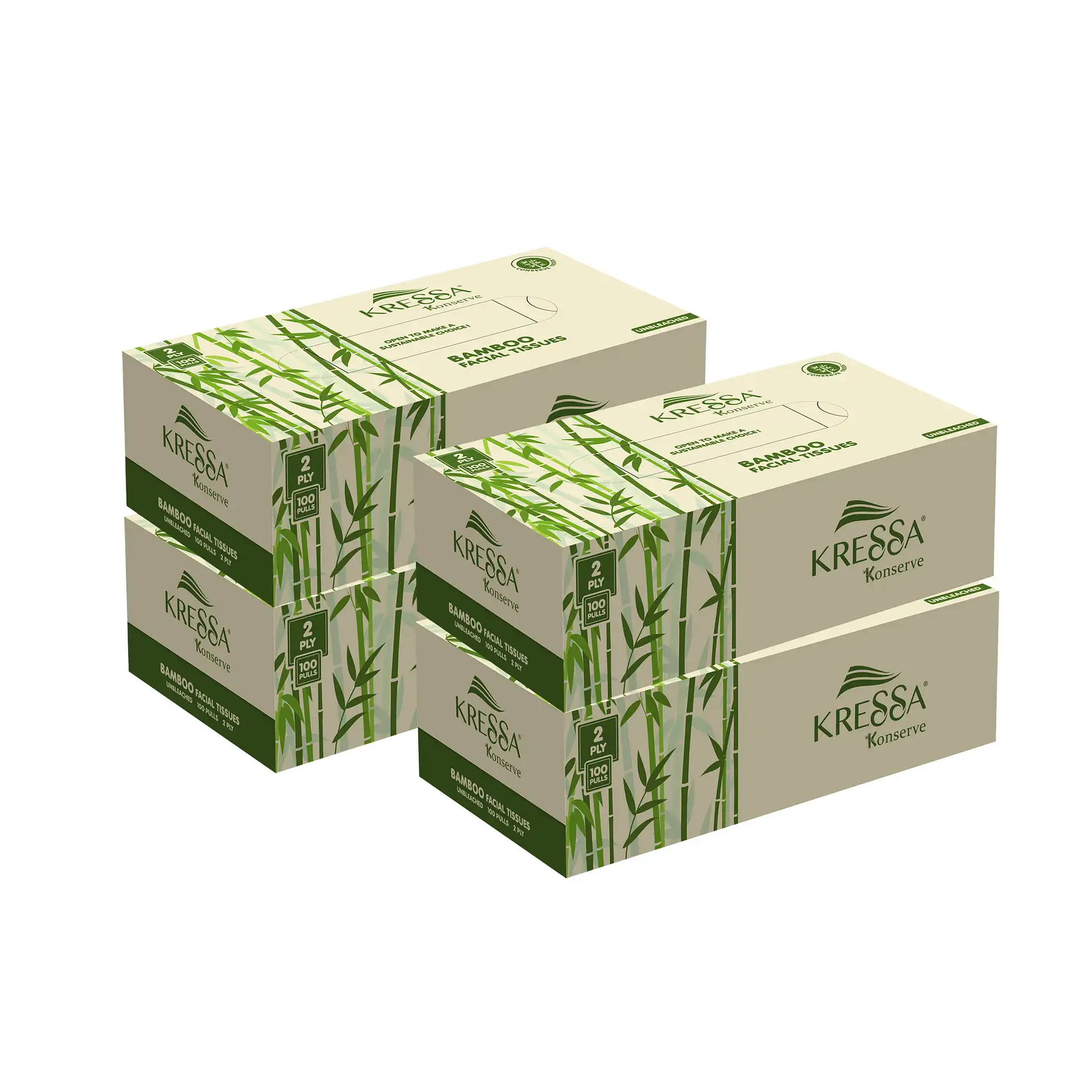 Kressa Konserve Bamboo Face Tissue – 2 Ply,100 Pulls (Pack of 4)