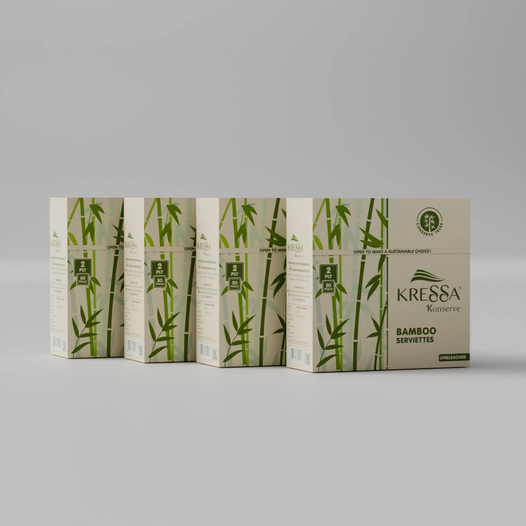 Kressa Konserve Bamboo Napkins | 2-Ply, 50 Pulls | Eco-Friendly, Unbleached, Food Safe (Pack of 4)