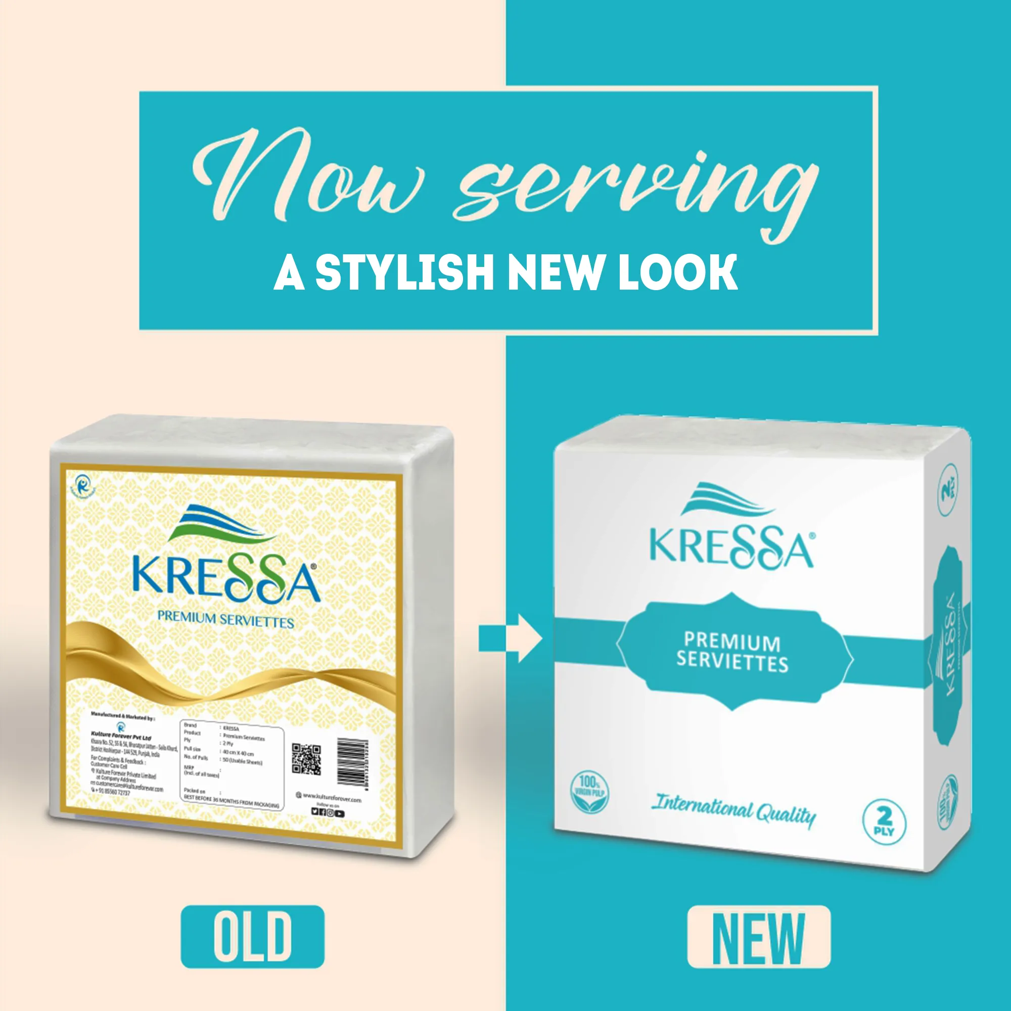 Kressa Premium Serviettes are made of 100% Virgin fiber pulp. Proudly crafted in India in a state-of-art facility with International Quality, our napkin serviette offer a blend of unique embossing design coupled with virgin paper, hence providing a super soft and gentle feel on use. Our napkin serviettes are free from Optical Brightening Agent which makes it chemical-free and food contact safe. Each pack of serviettes goes through several stages of quality check to ensure you get a flawless product.