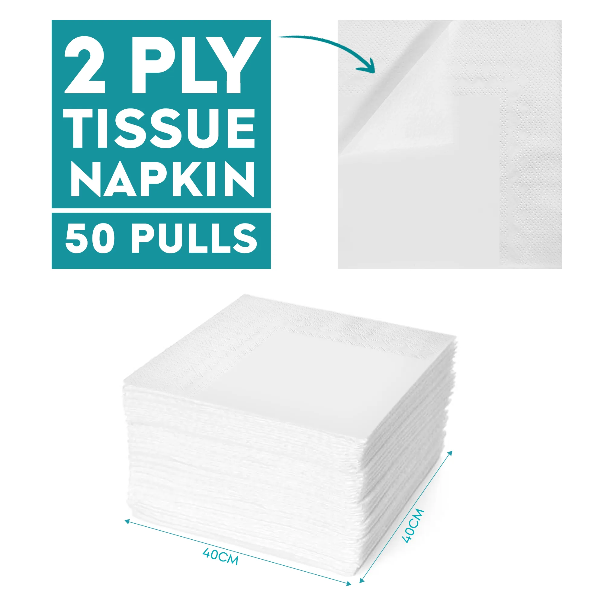 - 50 sheets 2 ply serviettes, each pack contains ready to use 50 serviettes of size 40 cm x 40 cm making it 50 finest quality napkins.