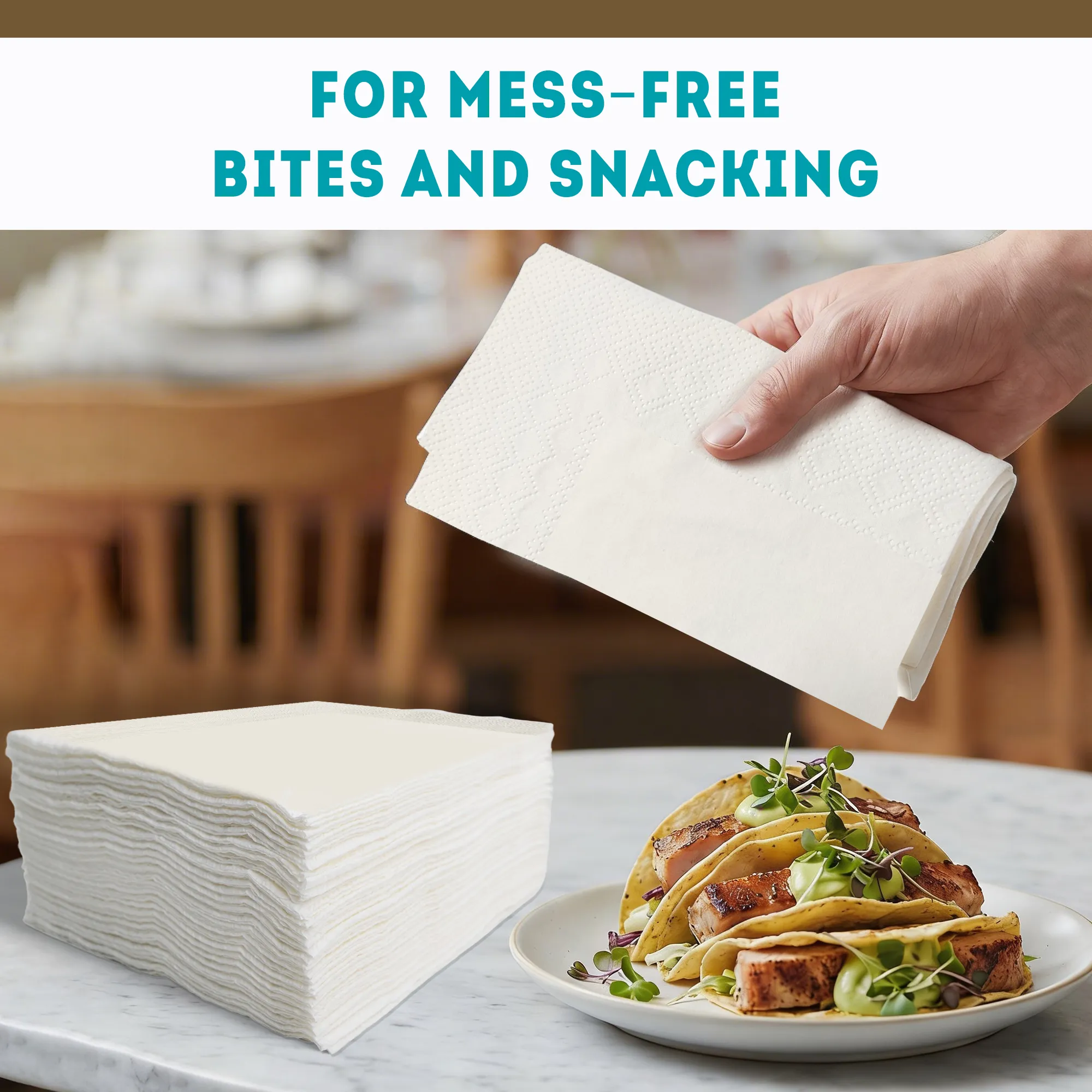 - Soft-touch paper napkins, super absorbent, superior wet strength, and premium look napkins.