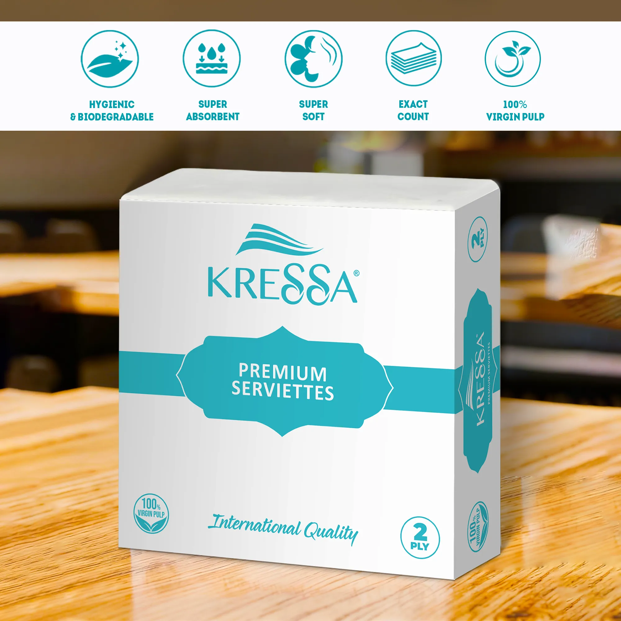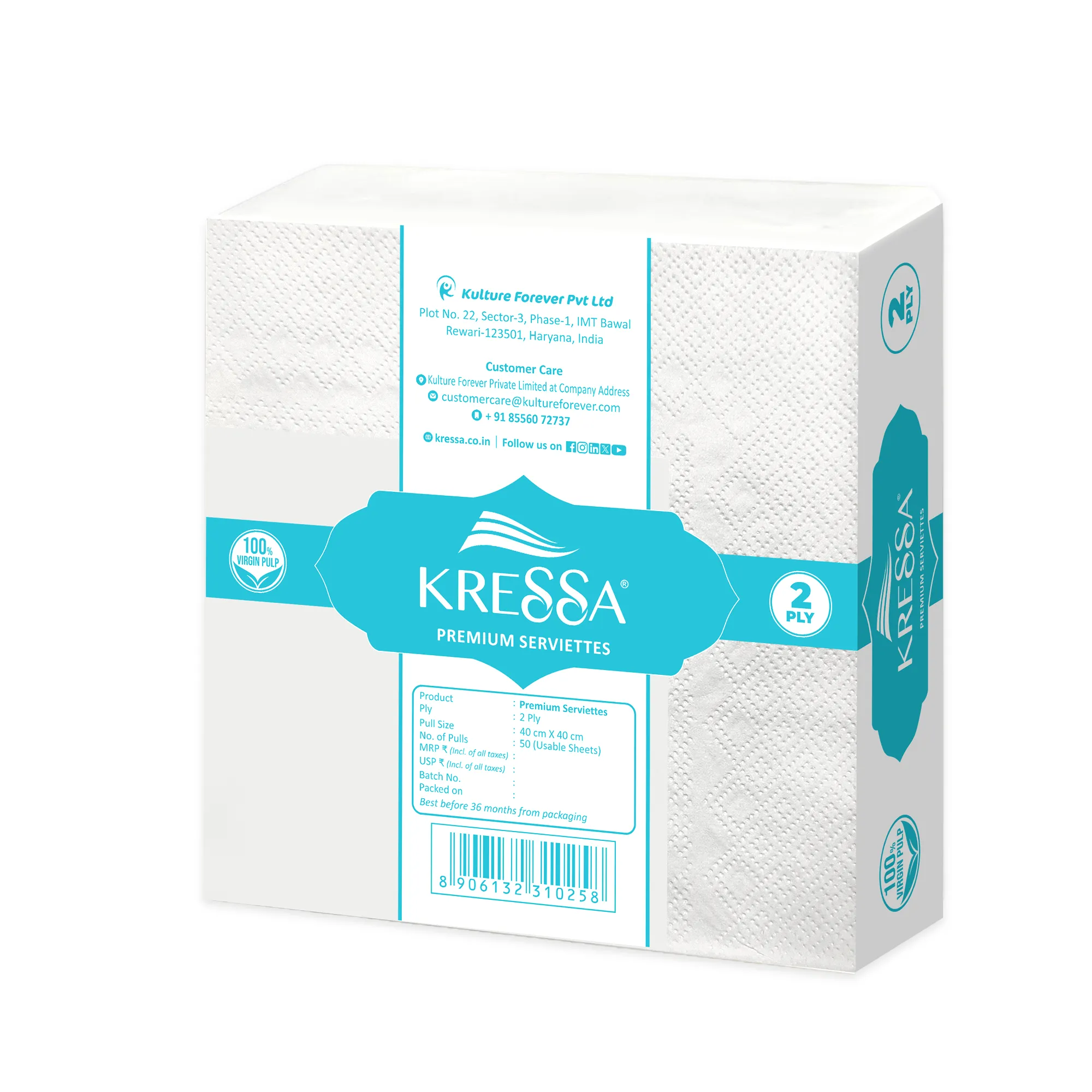 - Kressa Serviettes comes with packaging that keeps your tissue safe and premium look till you use the last tissue.