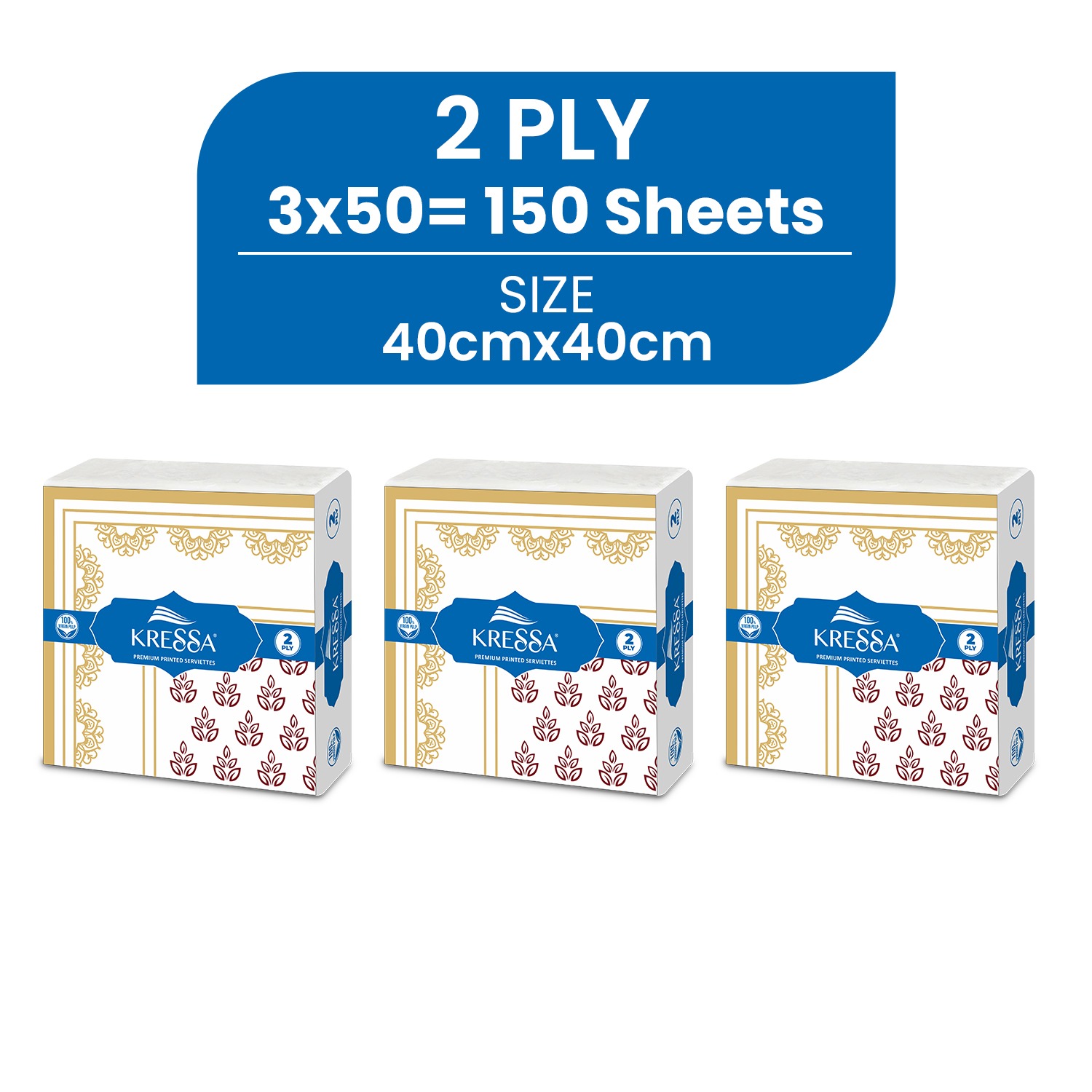 Kressa Premium Paper Napkins Printed 40×40 cm | 2 Ply Printed Tissue Paper – Pack of 3