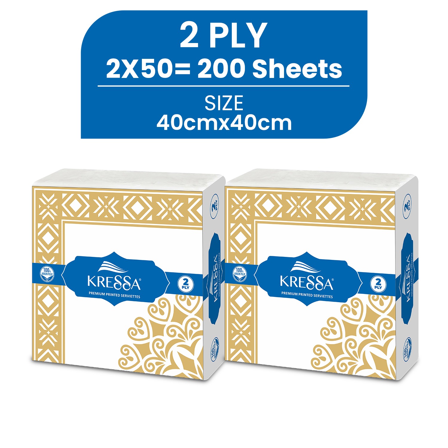Kressa Premium Printed Napkins 40x40cm | 2-Ply Printed Tissue Paper Napkins – Pack of 2 (100 Sheets)