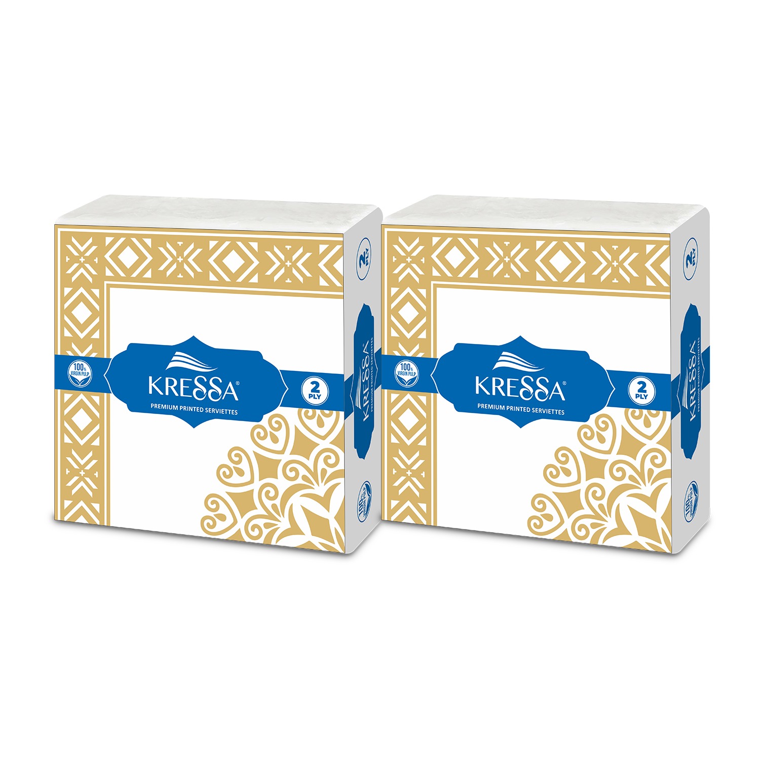 - Kressa Premium Printed Serviettes bring a soft, luxurious touch to every meal. Made from 100% virgin pulp with a 2-ply structure, they offer a soft, comforting feel that is gentle against the skin.