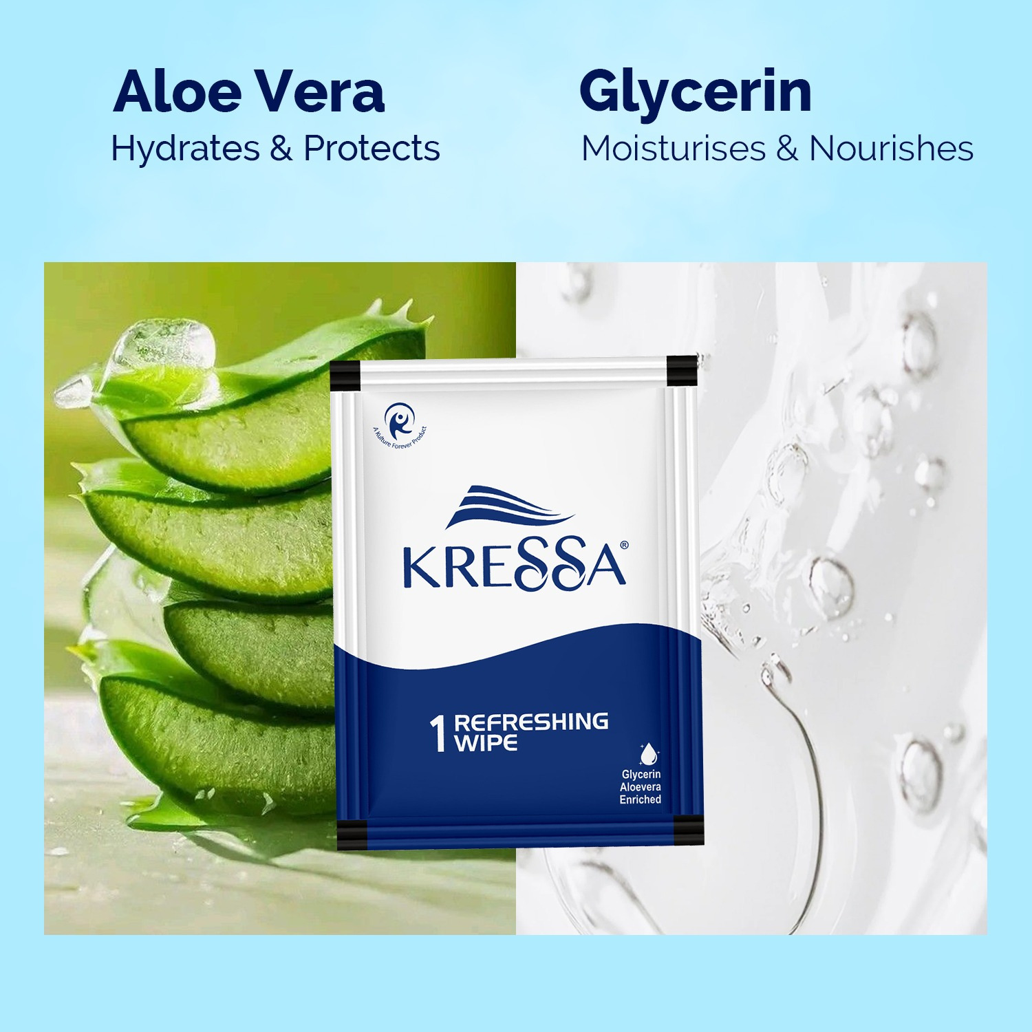 - Kressa Essential Face Wipes are infused with Aloe-vera & Glycerin that nourish and protect your skin.