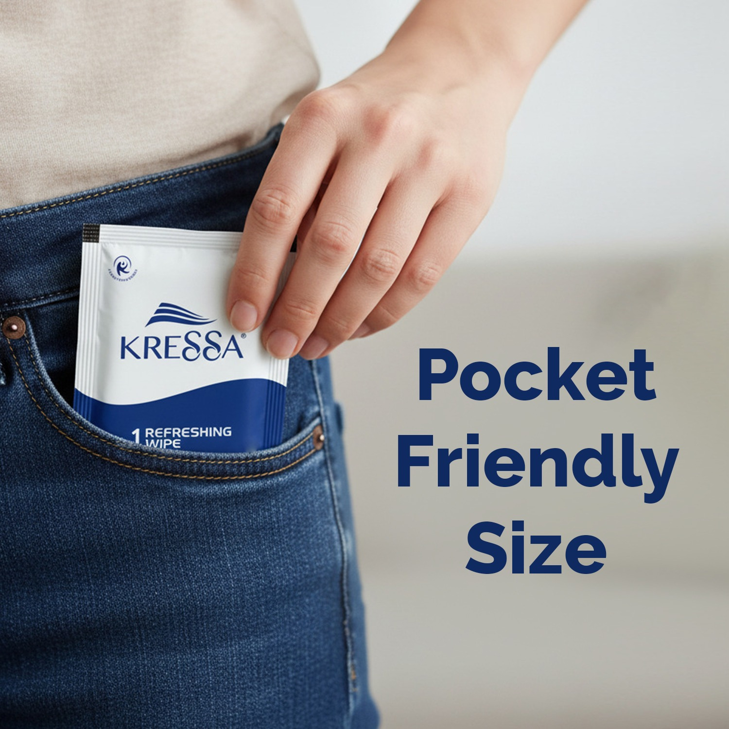 Kressa Essential Face Wipes Convenient and Effective Quick and Easy Cleanse Kressa Essential Face Wipes are the perfect solutions for busy lifestyles. Whether you're travelling or need a quick refresh, these wipes provide a convenient and effective way to cleanse your skin.
