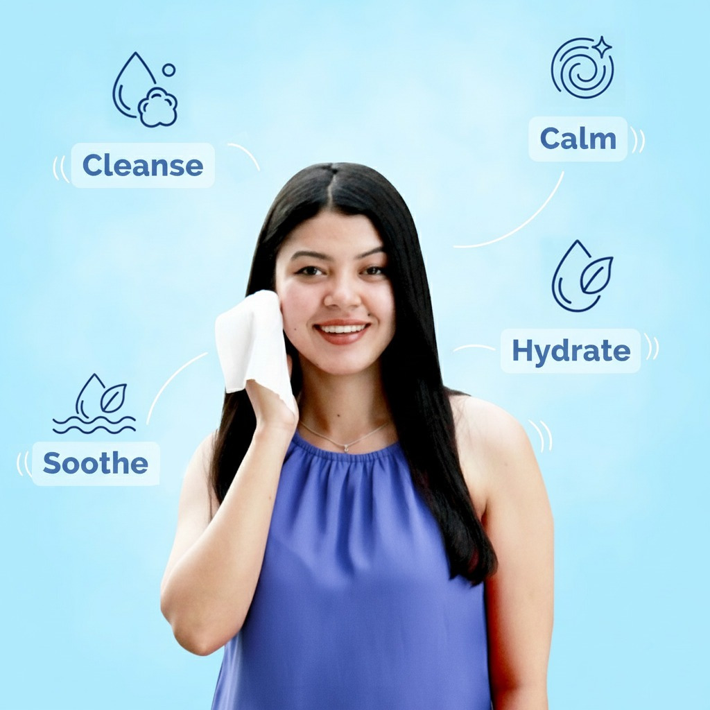 Make your daily skincare routine easier with Aloe vera and Glycerin infused nourishing wipes.
